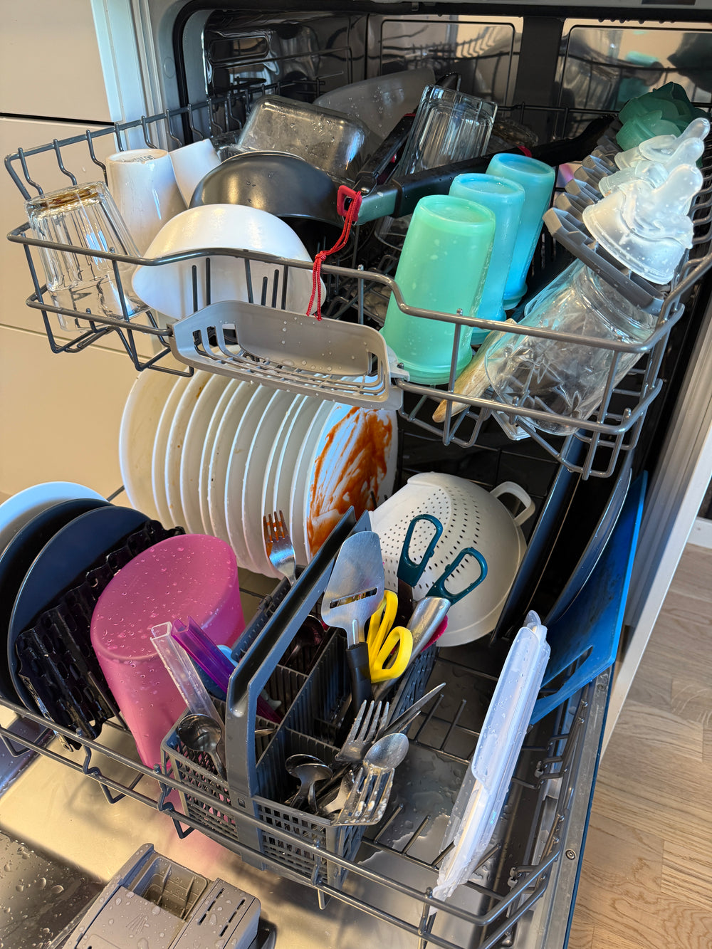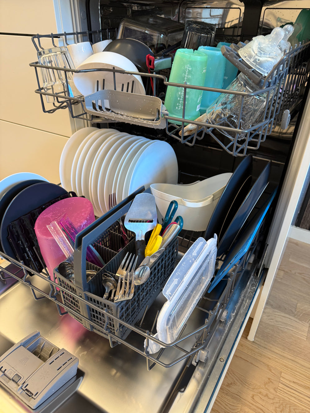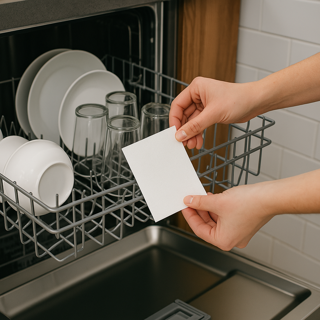 - Kör disken som vanligt – bladet löses upp helt i både kallt och varmt vatten.