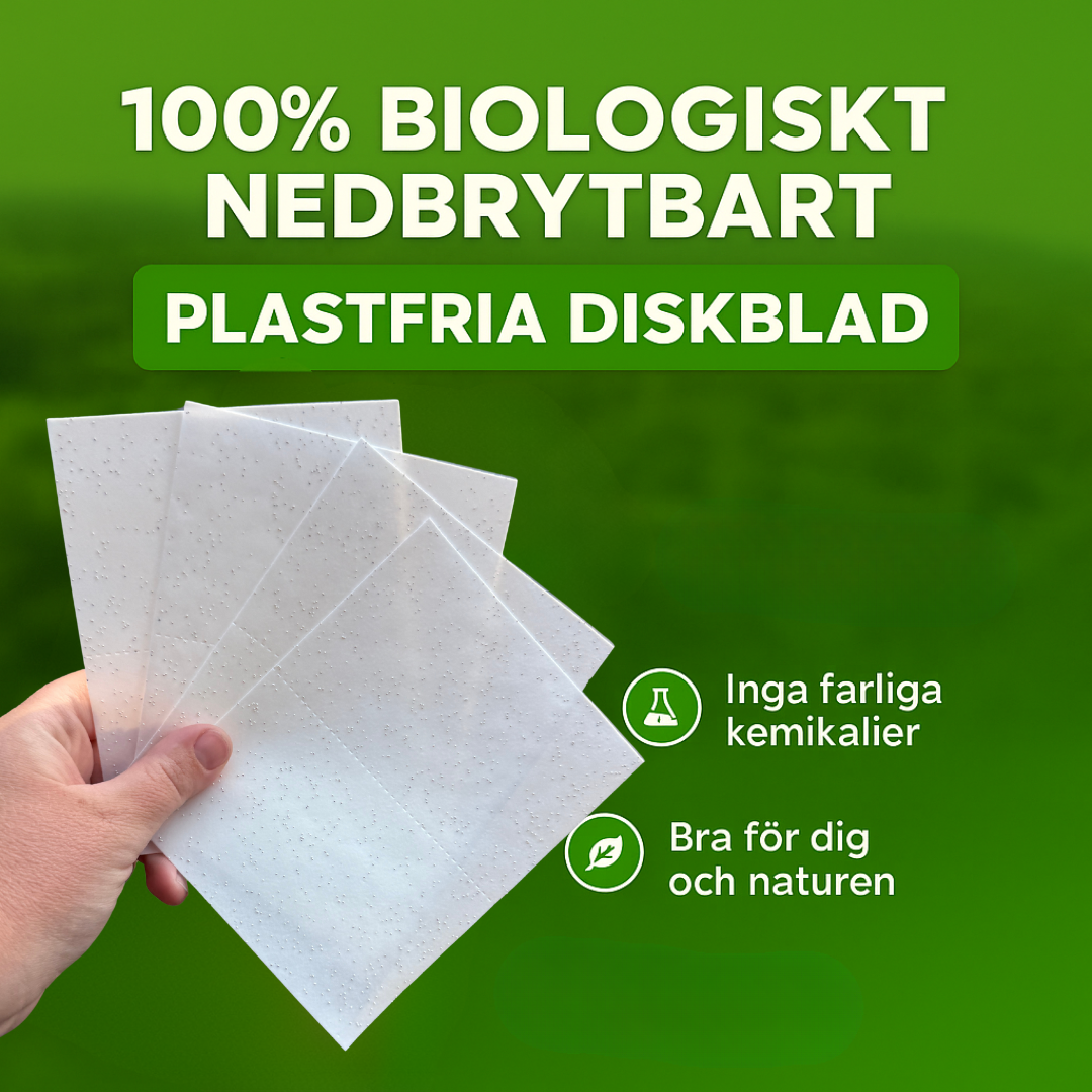 Våra blad är tillverkade av biologiskt nedbrytbara ingredienser som är snälla mot både huden och naturen. De är fria från skadliga ämnen som ofta hittas i traditionella tvätt- och diskmedel.